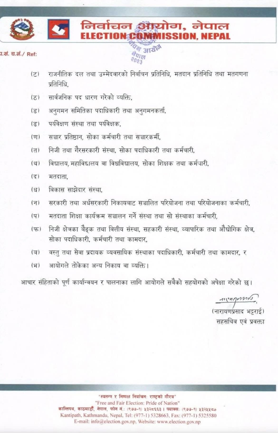 आज आयोगको कार्यालयमा बसेको कार्यवाहक प्रमुख निर्वाचन आयुक्तसहित पदाधिकारीको बैठकले यस्तो निर्णय गरेको हो ।